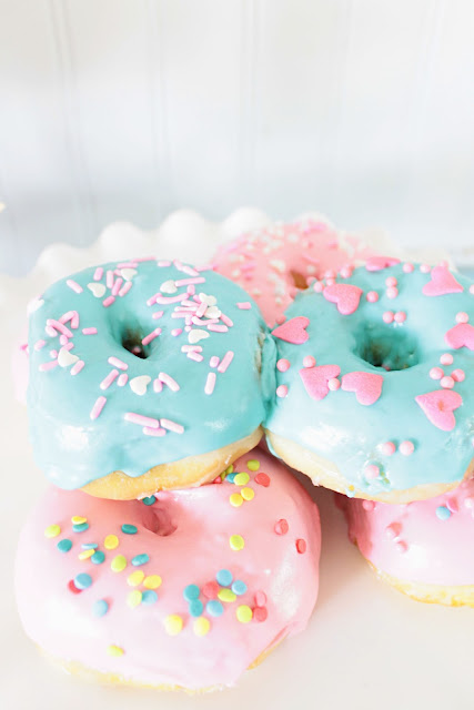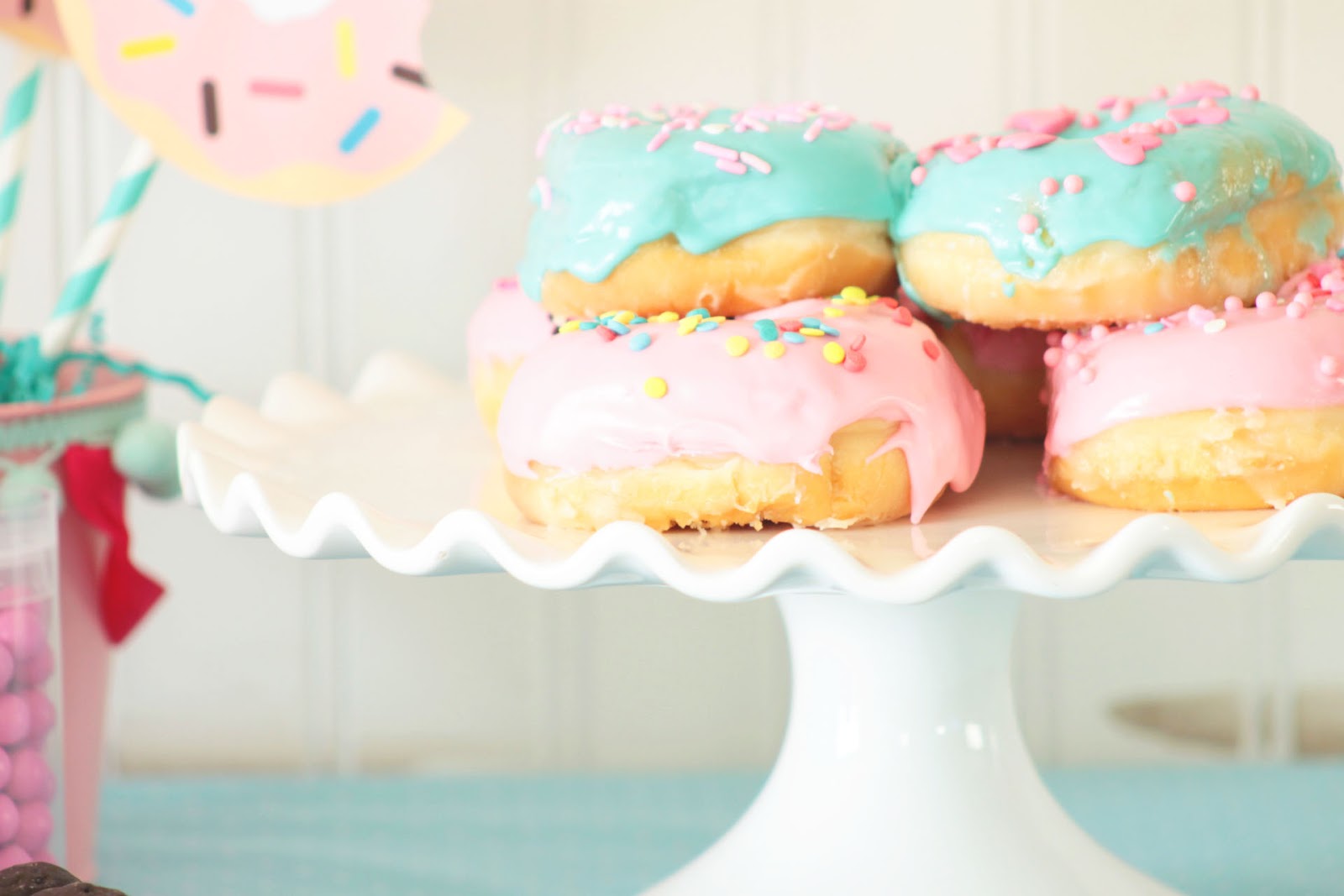 You and your kiddos can get creative with donuts by adding your own colorful glazed frosting and sprinkles to plain donuts. Simply warm up a can of vanilla frosting in the microwave for 30 seconds and add a bit of food coloring then, top your donuts with colorful sprinkles!