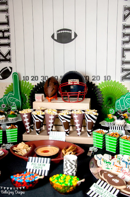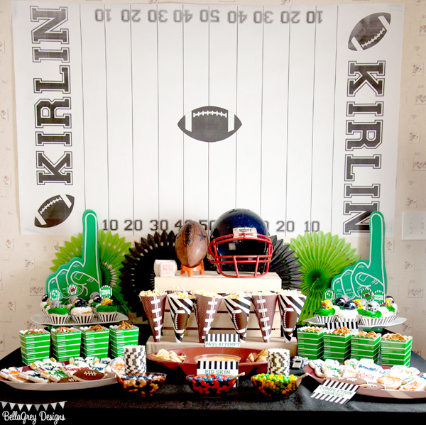 I LOVE throwing sports themed birthday parties for my son, and it seems as though BellaGrey Designs’ son and mine are kindred spirits…the more sports the better! Jennifer threw this AMAZING Football Party for her son’s 6th birthday and no detail was left un-attended. This party would be so much fun for a Super Bowl viewing party too!