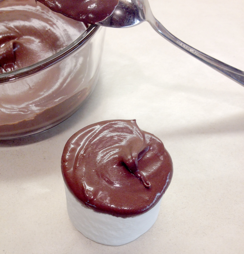 I like to swirl my chocolate on top, simply by twisting the marshmallow around.