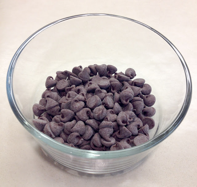 1) In a glass bowl, pour out your Chocolate Chips and place the bowl in the microwave until chips are melting, {about 45 seconds} be careful not to burn the chips. So watch them carefully.