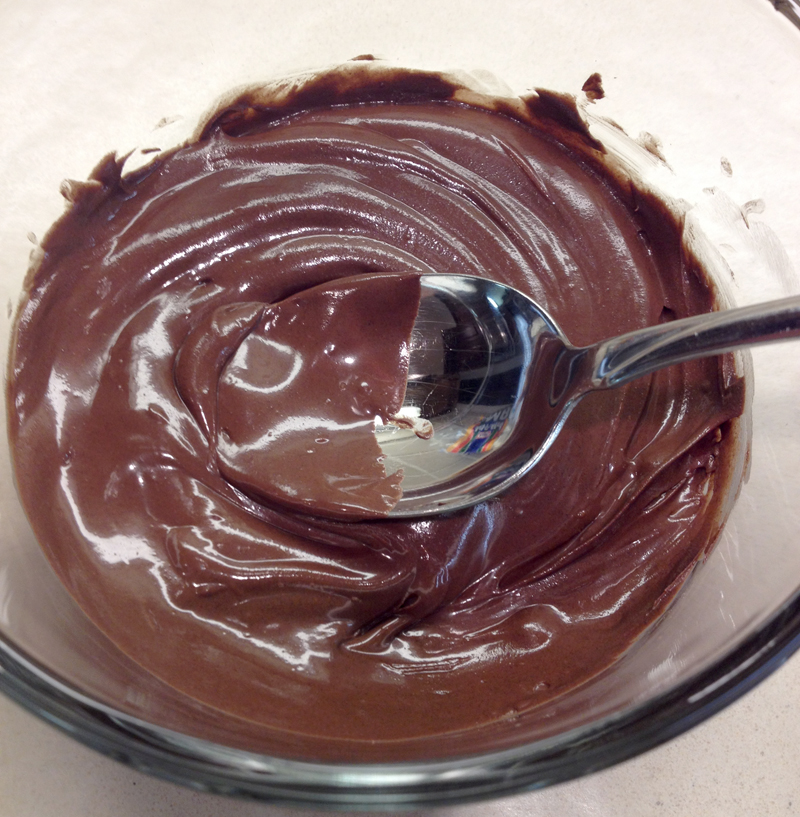 2) Once the chocolate chips have started to melt, take the bowl out of the microwave and stir the chips until they are fully melted like this.